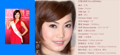2nd Runner-Up : Aileen Xu - 徐萌 (n°4) of Chongqing, China